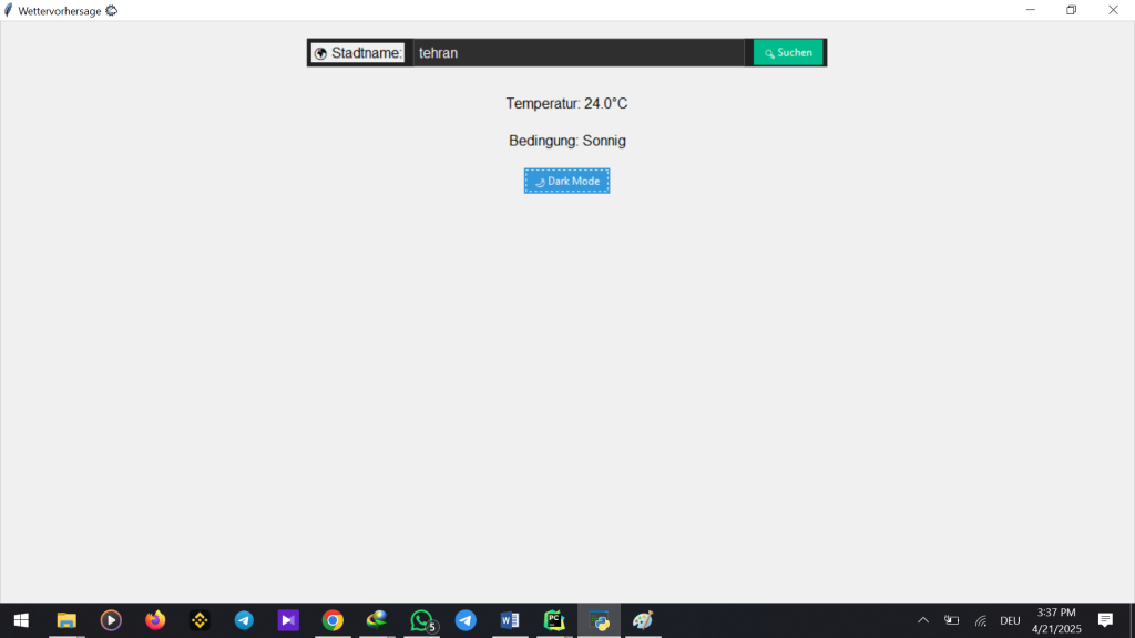 Eine Desktop-Anwendung zur Wettervorhersage mit API-Integration und Datenvisualisierung.