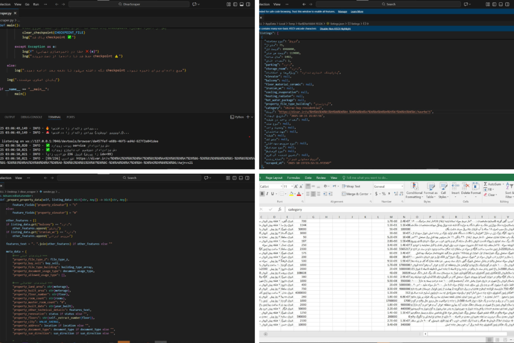 Ein vollständiges Automatisierungssystem zur Extraktion von Immobilienanzeigen von Divar mit Echtzeit-Datenverarbeitung und Integration in die Unternehmenswebsite.